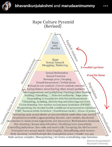 Take a look at the following Rape Culture Pyramid, and see where Maimuna Salma falls on the diagram. You will note that it is quite high up on the pyramid.